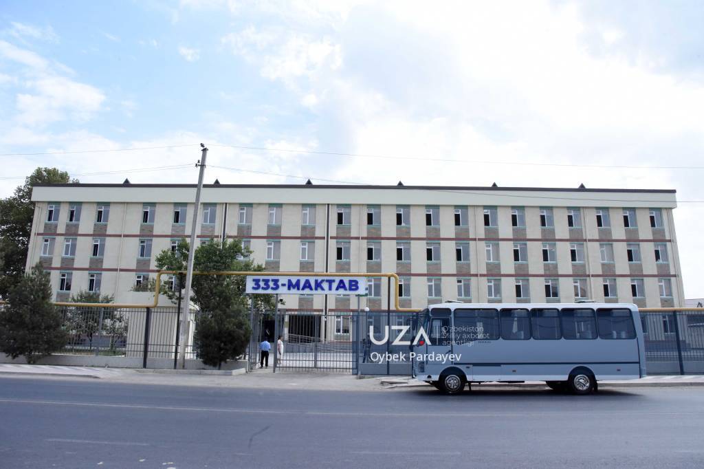 Первым пунктом назначения стала средняя школа № 333, расположенная на массиве «Чарток». Это учебное заведение, рассчитанное на 990 мест, было сдано в эксплуатацию в канун 34-й годовщины независимости нашей Родины. Проект реализован в рамках постановления Кабинета Министров Республики Узбекистан от 3 апреля 2021 года. Предыдущее здание школы было построено в 1974 году и обслуживало всего 320 учеников. Со временем, по мере роста населения и увеличения потребности в новых образовательных учреждениях, старое здание уже не могло отвечать необходимым требованиям.