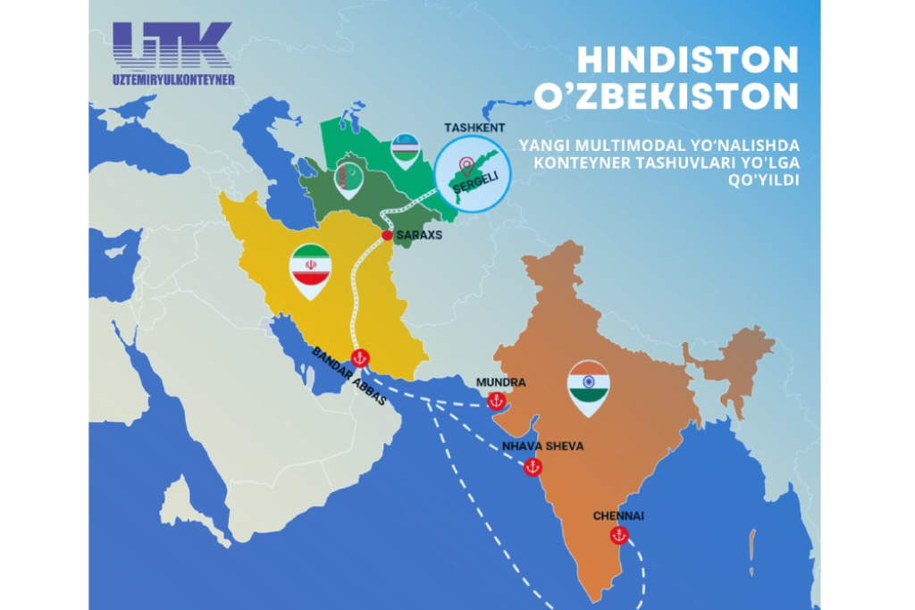 АО «Узтемирйулконтейнер» объявило о запуске нового мультимодального маршрута, который соединяет индийские порты Мундра, Нхава-Шева и Ченнаи с Узбекистаном. Этот маршрут значительно упростит и ускорит процесс доставки грузов между двумя странами.