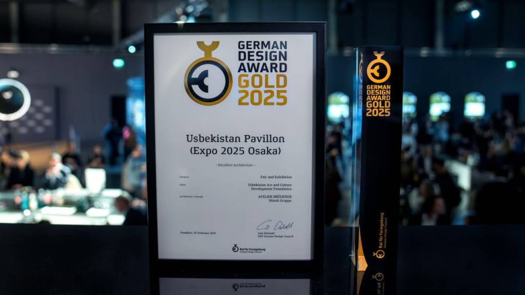 Делегация Фонда развития культуры и искусства Узбекистана приняла участие в церемонии вручения престижной премии German Design Award 2025. В рамках мероприятия павильон Узбекистана на Expo-2025 в Осаке, спроектированный ATELIERBRÜCKNER, был удостоен золотой награды в номинации «Превосходная архитектура – ярмарки и выставки». Получивший название «Сад знаний», он воплощает богатое культурное наследие Узбекистана и его стремление к устойчивому развитию. Полученная высокая награда подтверждает выдающийся архитектурный и концептуальный уровень проекта, подчеркивая растущее влияние нашей страны в мировом архитектурном и дизайнерском сообществе.