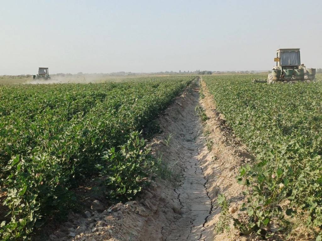 В июле, исходя из погодных условий и потребности в водных ресурсах, были организованы дополнительные поливные работы. Это положительно сказалось на процессе роста хлопчатника.