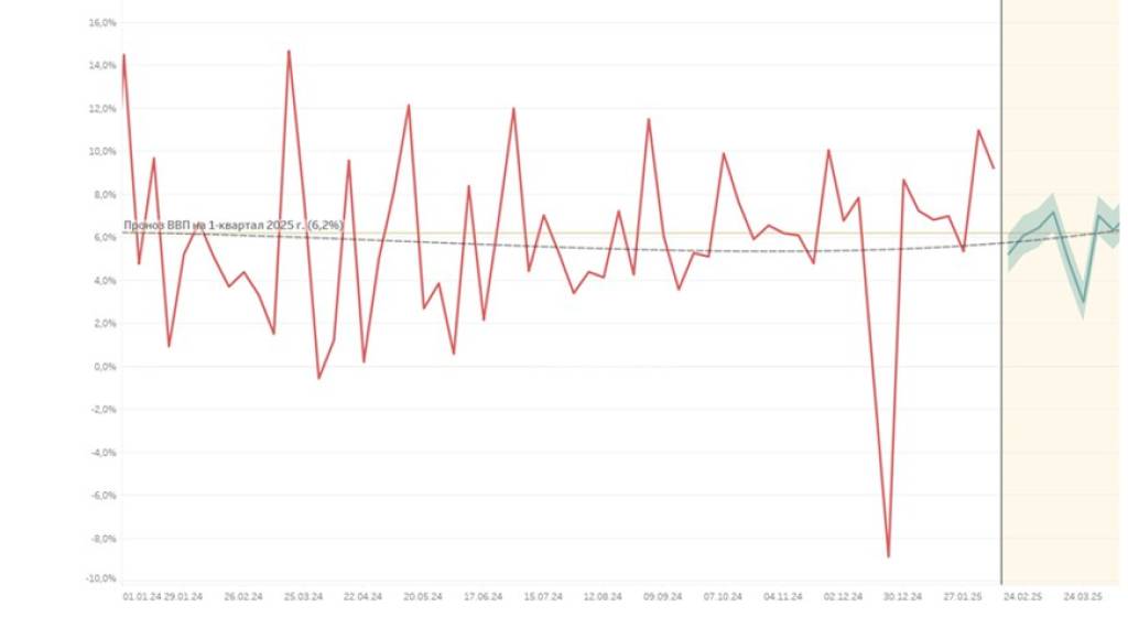 Исходя из имеющихся данных и тенденций, ожидается, что рост валового внутреннего продукта Узбекистана в первом квартале 2025 года составит 6,2%. Прогнозируемый диапазон экономического роста – от 6 до 6,4%.