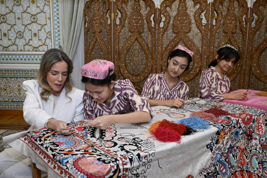 Высокая гостья ознакомилась с образцами творчества мастеров узбекского прикладного искусства, а также с национальными традициями и обычаями нашего народа.