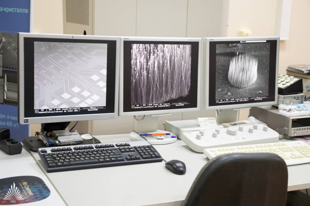 – Наш макет представляет собой твердую подложку кремния размером 5х5 мм с нанесенным нижним электродом, на которой выращен массив вертикально ориентированных углеродных нанотрубок. Над вершинами нанотрубок с использованием диэлектрических упоров закрепляется верхний профилированный электрод, – рассказала доктор физико-математических наук, профессор дивизиона «Электроника» Передовой инженерной школы ЮФУ Марина Ильина.