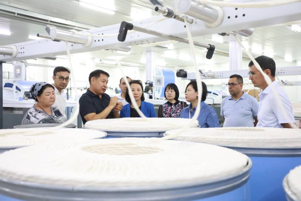 Члены делегации в сопровождении хокима района посетили предприятие «Боёвут Cotton Textile», созданное на основе китайских инвестиций. Оснащенный современным оборудованием производственный комплекс специализируется на переработке хлопкового сырья и выпуске полуфабрикатов текстильной продукции. На предприятии работают местные и китайские специалисты. Часть произведенной продукции реализуется на внутреннем рынке, другая –экспортируется в Китай, Россию, Турцию, Иран.