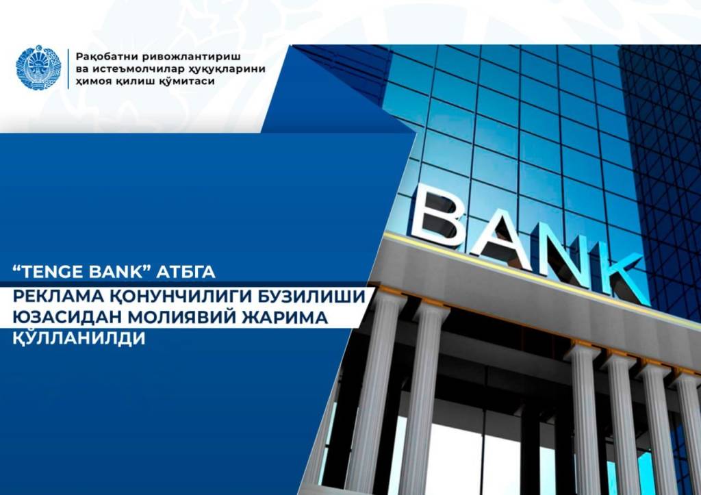 Комитет по развитию конкуренции и защите прав потребителей Республики Узбекистан выявил нарушения рекламного законодательства со стороны АКБ «Tenge Bank».