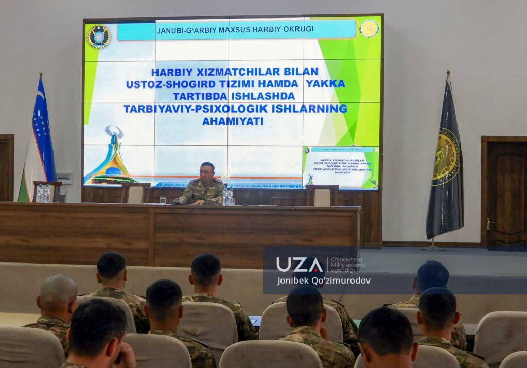 Жануби-ғарбий махсус ҳарбий округ тасарруфидаги Какайди гарнизонида жойлашган ҳарбий қисмда гарнизонда хизмат қилаётган офицер ва сержантлар иштирокида “Ҳарбий хизматчилар билан устоз-шогирд тизими ҳамда якка тартибда ишлашда тарбиявий-психологик ишларнинг аҳамияти” мавзусида давра суҳбати ўтказилди.