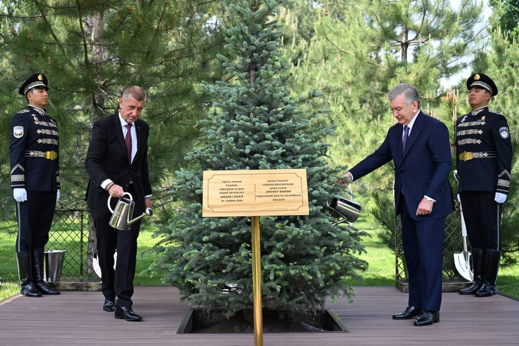 По итогам узбекско-чешских переговоров на высшем уровне Президент Республики Узбекистан Шавкат Мирзиёев и Премьер-министр Чешской Республики Андрей Бабиш вместе посадили дерево на Аллее почетных гостей.
