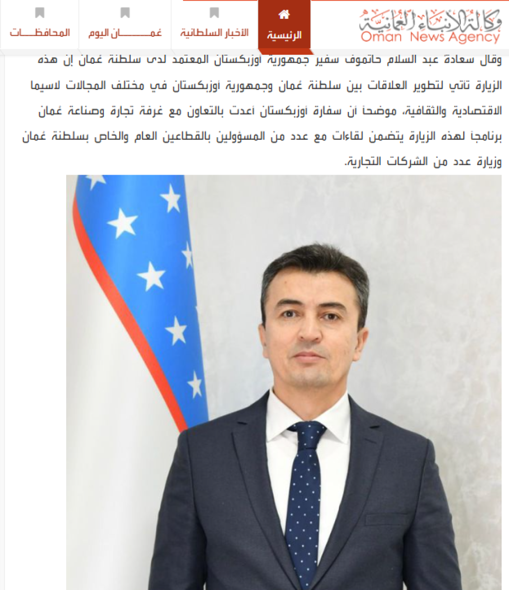 Информационное агентство ONA сообщило, что группа деловых женщин из Узбекистана посетит Султанат Оман для налаживания отношений с его бизнес-леди.