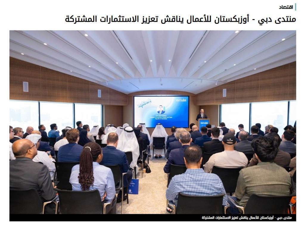 Узбекско-эмиратский бизнес-форум собрал свыше  100 представителей деловых кругов  двух стран. На встречах в формате B2B обсуждались перспективные инициативы в направлении расширения экспорта, промышленного производства и развития инфраструктуры. Было отмечено, что все более  расширяется участие  узбекских деловых кругов в Дубае, и к концу 2024 года число узбекских компаний, зарегистрированных в Торгово-промышленной палате Дубая (ТПП Дубая), превысило  700, что на 34,5 % больше, чем за аналогичный период предыдущего  года.