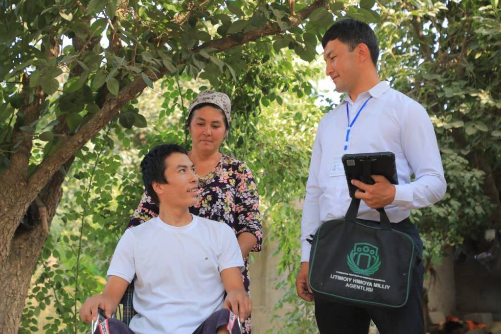 Несмотря на молодость, Мухаммад Юлдашев из махалли «Актумшук» Шурчинского района Сурхандарьинской области был единственным кормильцем семьи. Из-за несчастного случая он оказался прикованным к постели. Но социальный работник Умид Тошкобилов принес луч надежды семье, которая столкнулась с неожиданным испытанием и была духовно опустошена. Он посетил его во время переписи, ознакомился с условиями жизни семьи и увидел, что молодой человек совсем не взаимодействует с внешним миром. С помощью кейс-менеджментских услуг социальный работник определил М. Юлдашеву первую группу инвалидности, назначена пенсия.
