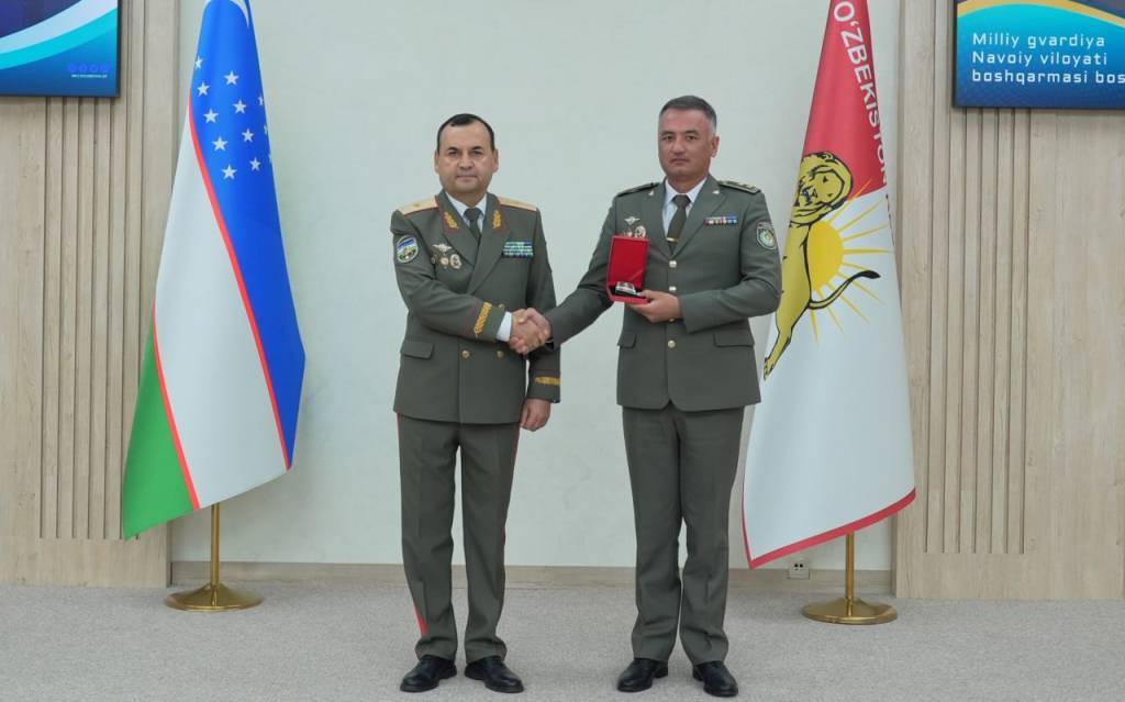 На мероприятии отмечалось, что Указом Президента страны “О награждении в связи с 34-летием государственной независимости Республики Узбекистан группы военнослужащих и сотрудников правоохранительных органов” достойно награждены 9 военнослужащих Национальной гвардии.