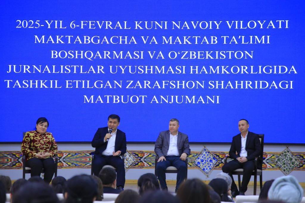 В рамках мероприятия была организована пресс-конференция для представителей СМИ с участием хокима Зарафшана Назирбека Рахмонова и заместителя начальника областного управления дошкольного и школьного образования Зафара Ниязова.