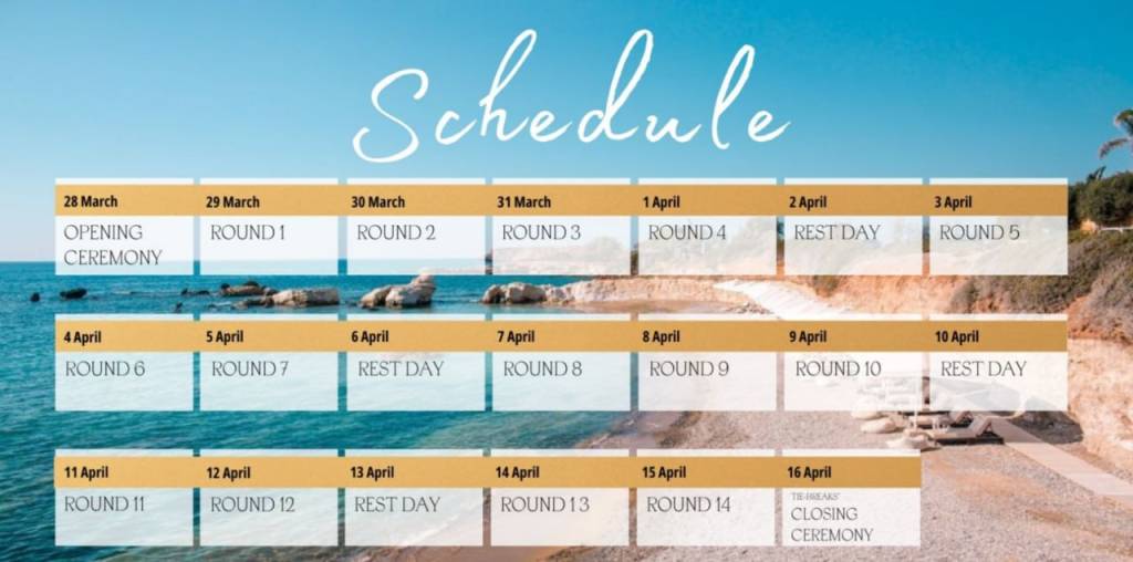 Bugun, 28-mart kuni Kiprda Xalqaro shaxmat federatsiyasi tomonidan o‘tkaziladigan Nomzodlar turniri musobaqasining tantanali ochilish marosimi bo‘lib o‘tadi.