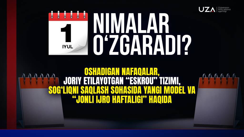 Ўзбекистон қонунчилигида 2025 йил 1 июлдан бир қатор ўзгариш ва янгиликлар кучга киради. Бугунги лавҳамизда ушбу санадан кучга кирадиган асосий ўзгаришлар ҳақида батафсил маълумот берамиз.
