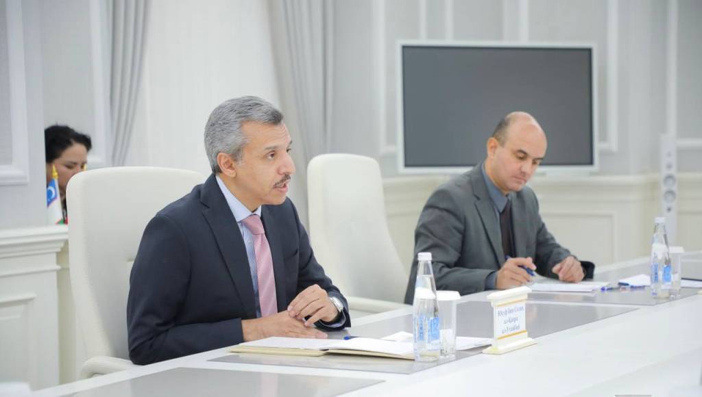 在塔什干市政府,首都市长沙夫卡特·乌穆尔扎科夫会见了沙特阿拉伯王国特命全权大使尤素夫·本·萨利赫·卡赫拉·奥泰比。