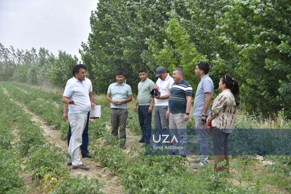 Пресс-тур иштирокчилари Хатирчи туманидаги Оқ олтин маҳалласида қишлоқ хўжалиги маҳсулотлари етиштириш борасида амалга оширилаётган ишлар билан танишди.