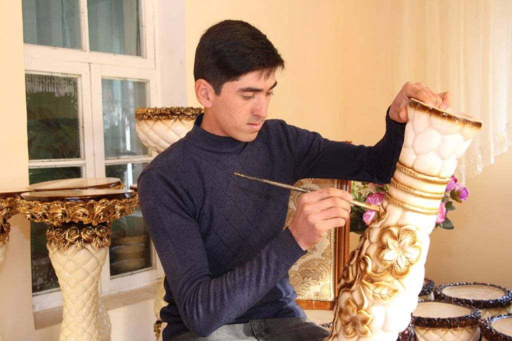 Якка тартибдаги тадбиркор сифатида иш олиб бораётган ёш уста яқинда банкдан олинган 10 миллион сўм имтиёзли кредит ҳисобига хомашё захирасини тайёрлади. Эндиликда фаолиятини кенгайтириш ва янги устахона қуриш ниятида. Ёш ҳунарманднинг шогирдлари орасида мактаб битирувчиси Миролим Ирисбоев ҳам бор. Болаликдан ногирон бўлса ҳам устозларининг саъй-ҳаракати билан уйда таълим олган Миролим бу ҳунарни ўрганишга киришди. Қолипдан чиққан тайёр идишга ранг бериш, гўзал нақшу нигорларига зарҳал билан ишлов беришнинг ҳадисини олиб ҳам улгурди.