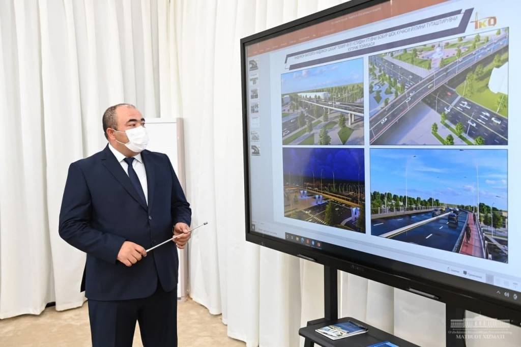 Президентимиз Андижон шаҳридаги Бобур шоҳ кўчасини бирлаштирувчи темир йўл устидан ўтадиган йўл ўтказгич лойиҳаси билан танишди.