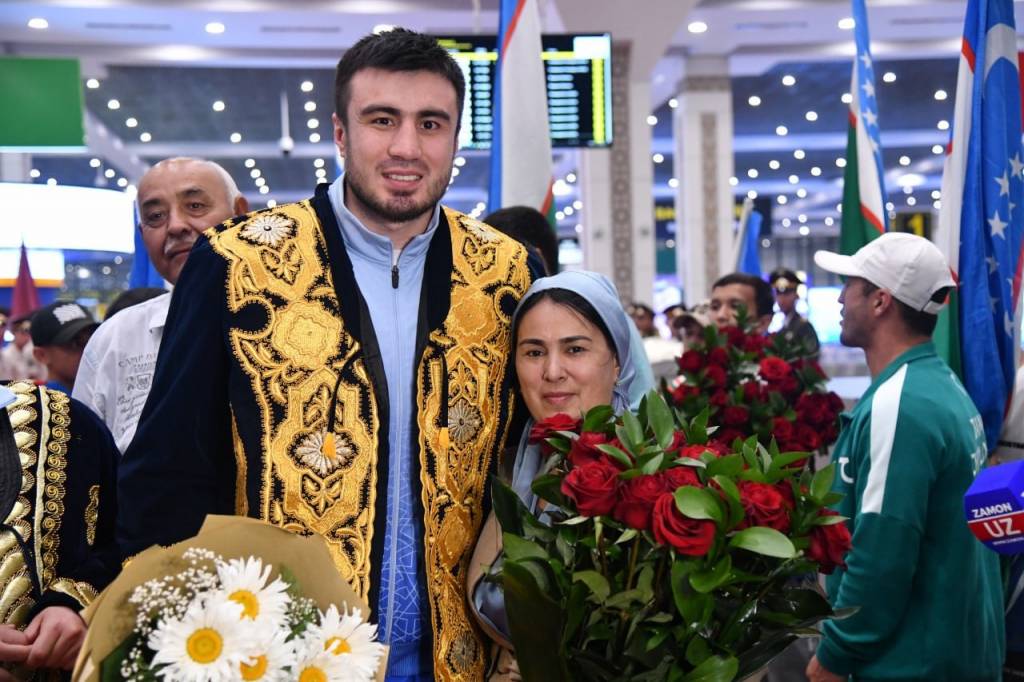 Уни Ислом Каримов номидаги Тошкент Халқаро аэропортида Спортни ривожлантириш вазири ўринбосари Шаҳрулло Маҳмудов, Миллий Олимпия қўмитаси Бош котиби Ойбек Қосимов, Ўзбекистон бокс ва профессионал бокс федерацияларининг мутасаддилари, спортчининг яқинлари, кенг жамоатчилик вакиллари тантанали кутиб олди.