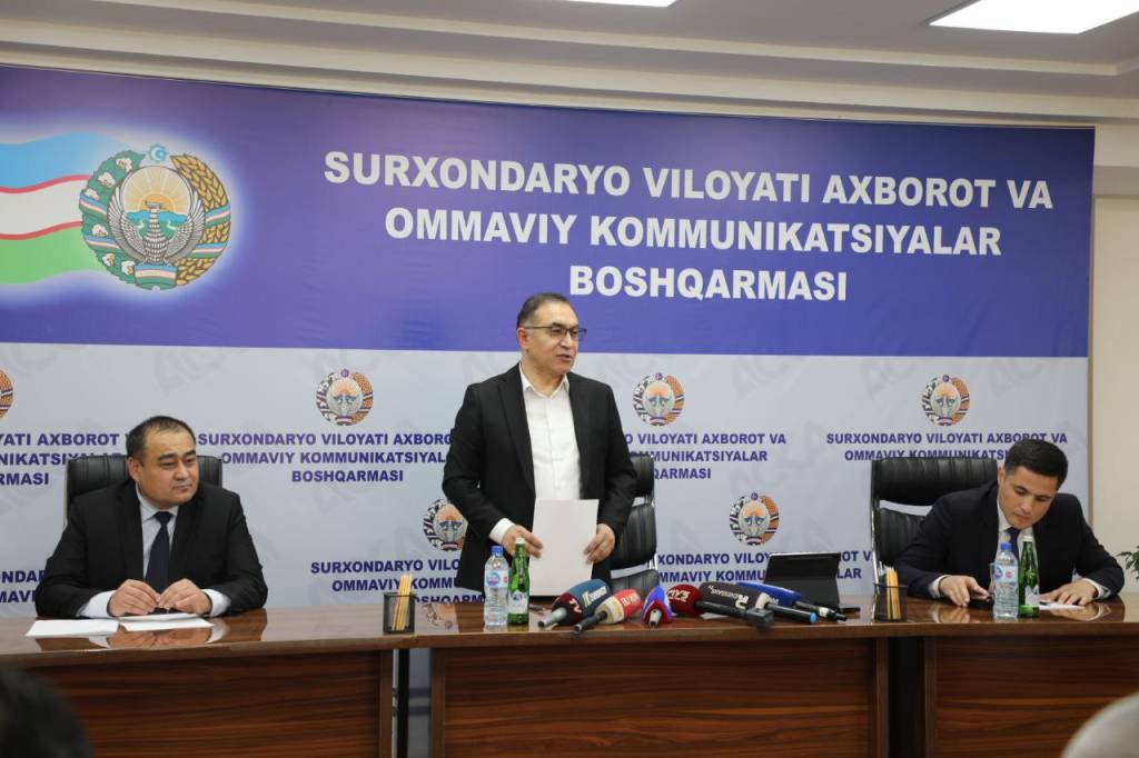 Термиз шаҳридаги Матбуот уйида Ўзбекистон Республикаси Президенти Администрацияси ҳузуридаги ахборот ва оммавий коммуникациялар агентлиги директори Асаджон Ходжаев Сурхондарё вилоятидаги оммавий ахборот воситалари раҳбар ва ходимлари, давлат бошқаруви идоралари матбуот котиблари ҳамда блогерлар билан очиқ мулоқот ўтказди.