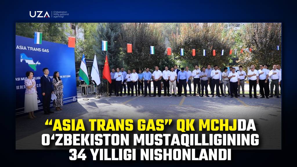 Куни кеча пойтахтимизда жойлашган “AsiaTrans Gas” МЧЖ ҚК бош идорасида Ўзбекистон Республикаси Мустақиллигининг 34 йиллигига бағишланган тантанали тадбир бўлиб ўтди. Эрта тонгдан меҳмонларни байрамона муҳит қамраб олди: карнай-сурнай садолари ушбу улуғ айёмга ўзгача зеб бериб, барчанинг кўнгли қувонч ва фахрга тўлди. Тадбир аввалида мазкур корхона бош директори Лю Чжигуан нутқ сўзлаб, иштирокчиларни ушбу шодиёна кун билан табриклади.