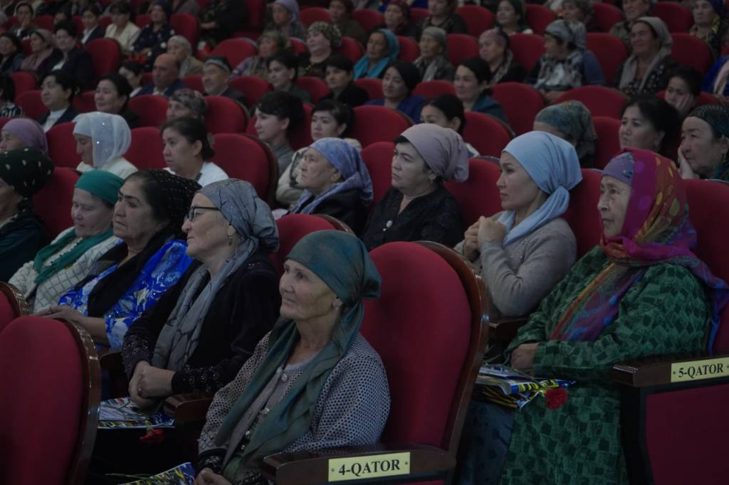 Тадбирда жамиятда аёллар ўрнини янада мустаҳкамлаш, уларнинг ҳуқуқ ва манфаатларини ҳимоя қилишга қаратилган фармон ва қарорлар қабул қилинаётгани, турмуш даражасининг ошиб бораётгани қайд этилди.