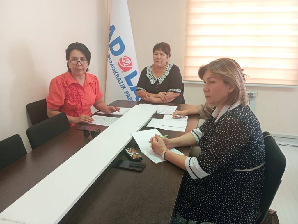 Партия фаоллари томонидан "Аёллар дафтари" ва "Темир дафтар"га 173 нафар хотин-қизнинг киритилишига амалий ёрдам берилган. "Бир адолатчи - юзта аёлга ҳимоячи" лойиҳаси доирасида учрашувлар, давра суҳбатлари, семинарлар ўтказилиб, унда жами 12 минг 788 нафар хотин-қиз қамраб олинди.