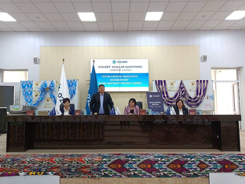 Республика ўрта тиббиёт ходимлар малакасини ошириш ва ихтисослаштириш маркази Навоий вилояти филиалида Тадбиркорлар ва ишбилармонлар ҳаракати – Ўзбекистон Либерал-демократик партияси Навоий вилоят Кенгаши “Аёллар қаноти” томонидан “Дурдона” лойиҳаси доирасида “Китоб – маънавият булоғи” мавзусида маънавий-маърифий тадбир ташкил этилди.