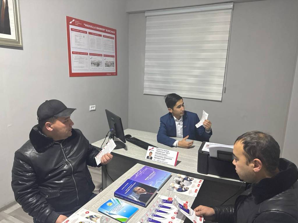 Айни пайтда маҳалла банкирлари ва ёрдамчи агентлар маҳалланинг бизнес имкониятларини ўрганиб, одамлар билан бевосита суҳбатлар ўтказиб уларнинг ғояларини лойиҳаларга айлантирмоқда.