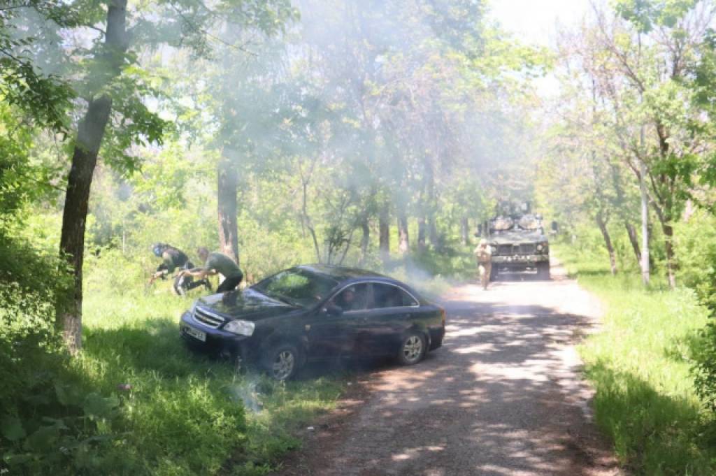 Округ қўмондонига блок-пост бошлиғи вазият ҳақида маълумот етказди. Яъни машинада уч нафар қисман ҳарбий тайёргарликка эга бўлган шахслар ҳаракатланишган. Улардан 1 нафари таслим бўлди. Текшириш давомида 2 та АК-74 қуроли, 1 та Макаров пистолети ва портловчи моддалар ашёвий далил сифатида қўлга олинди.