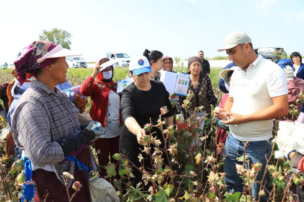 Ўзбекистон Республикаси Бош вазирининг ўринбосари Зулайҳо Маҳкамова Сирдарё вилоятининг Сирдарё туманидаги “Омонбой ўғли Тугал” фермер хўжалиги пахта даласида бўлиб, пахта йиғим-теримида иштирок этаётган теримчи аёллар билан суҳбатлашди.