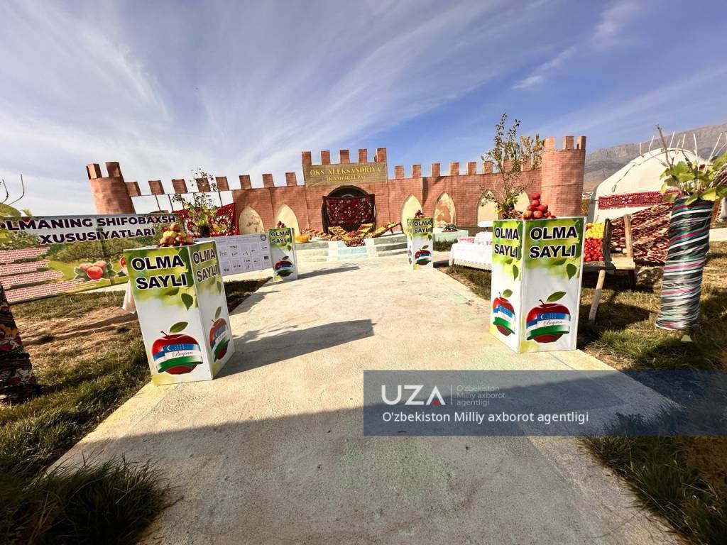 Олма етиштираётган фермерлар, Бойсун давлат ўрмон хўжалиги ва деҳқон хўжаликлари замонавий комплексда турли рангда товланувчи болдек ширин мевалар кўргазмасини ташкил этиб, ўз маҳсулотларини кенг намойиш этмоқда. Шунингдек, мажмуада Бойсуннинг шифобахш гиёҳлари, асал, нок, узум ва бошқа ранг-баранг мевалари, бойсунлик пазандалар тайёрлаган турли таомлар, миллий ҳунармандлик буюмлари ҳам ўрин олган.