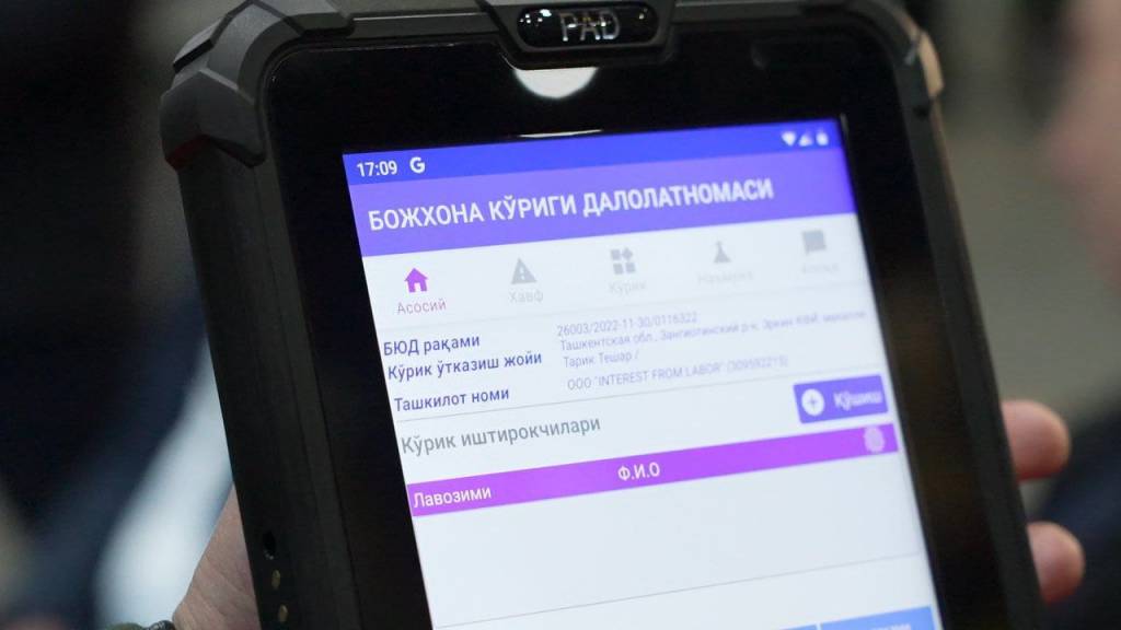 Мазкур тизим расмийлаштирув вақти ва тадбиркорларнинг харажатларини тежаш, кўрик жараёнларини реал вақт режимида назорат қилиш ва натижаларни қайд этиш имконини беради.
