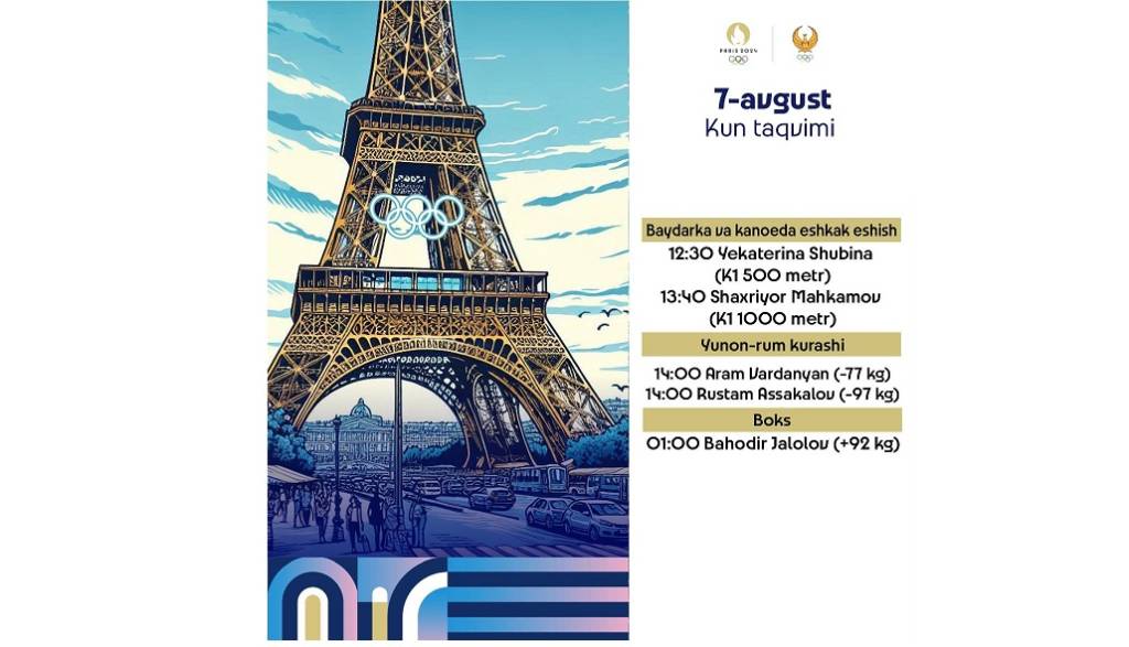 Бугун, 7 август куни Францияда давом этаётган Олимпиадада 20 спорт тури бўйича беллашувлар бўлиб ўтади. Шундан 10 тасида ёзги Олимпия ўйинларининг ғолиб ва совриндорлари аниқланади.