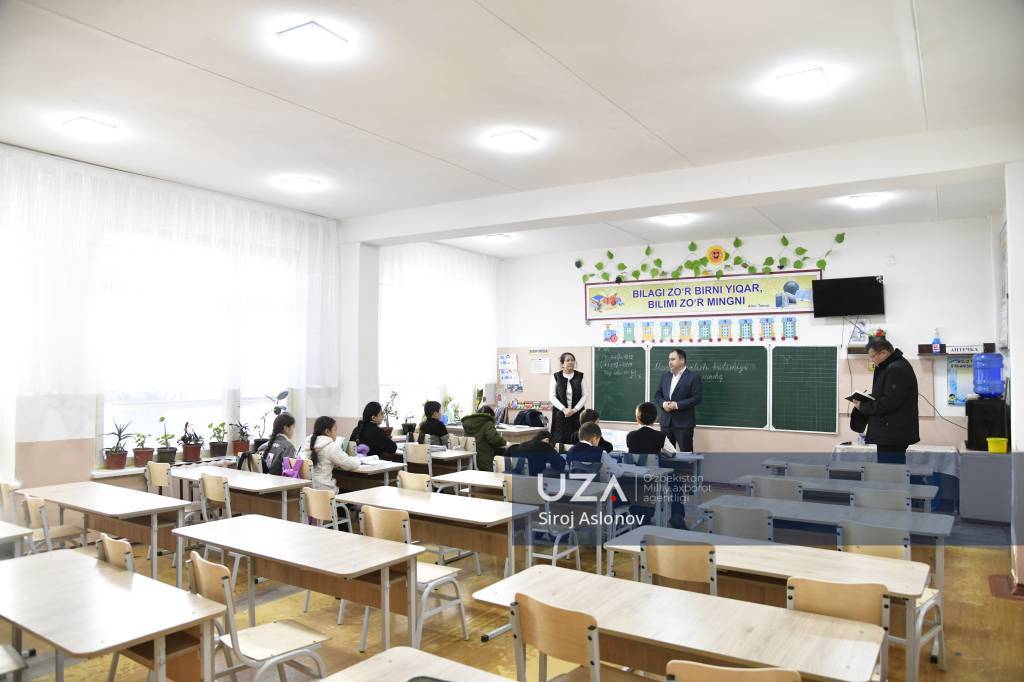Мактаб директорининг ўқув ишлари бўйича ўринбосари Наргиза Мамараимованинг берган маълумотига кўра, таълим муассасасида 868 нафар ўқувчи, 80 нафар ўқитувчи бор. Дарслар икки навбатда олиб борилади. Биринчи навбатда 524 нафар ўқувчидан 175 нафари дарсларга келган. Синф хоналари совуқлиги боис дарслар қисқартирилган ҳолда ўтилган ва ўқувчиларга жавоб берилган. Ўқитувчилар қўшимча иситиш воситасидан фойдаланган ҳолда тўпланиб исинмоқда.