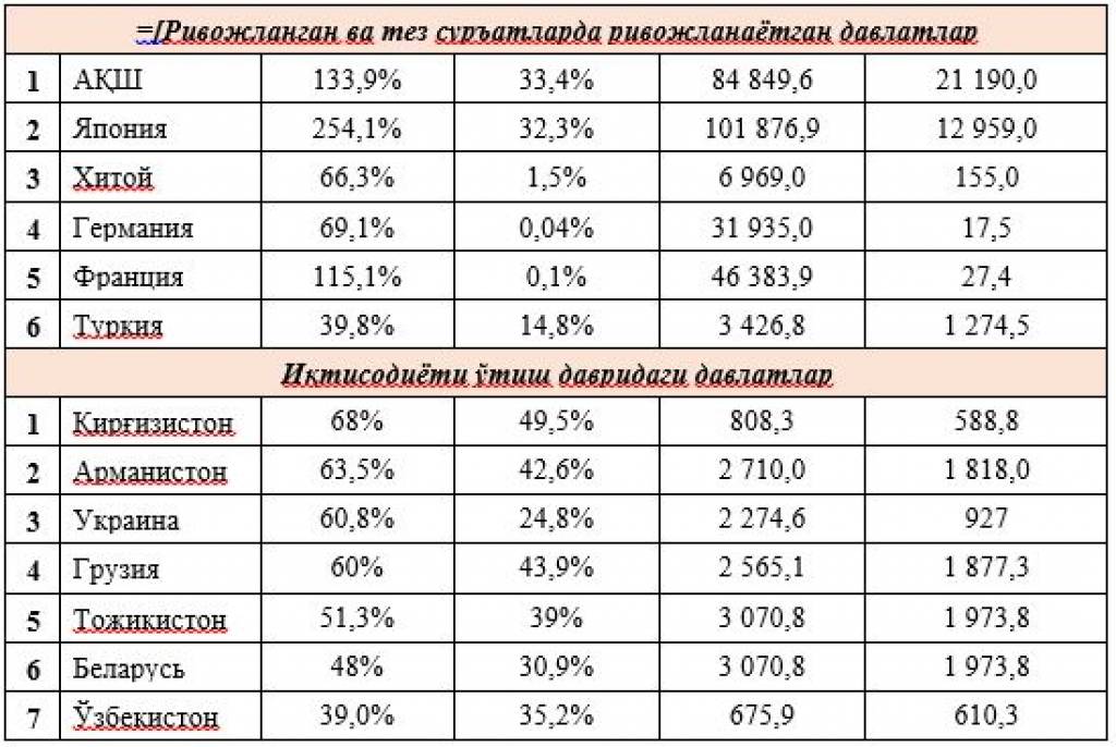 (жадвал unctad.org imf.org ва Халқаро валюта фонди статистик