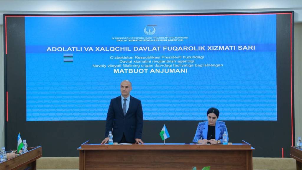 Навоий шаҳридаги Ёшлар марказида Президент ҳузуридаги Давлат хизматини ривожлантириш агентлиги Навоий вилояти филиали томонидан “Адолатли ва халқчил давлат фуқаролик хизмати сари” мавзусида матбуот анжумани ташкил этилди.