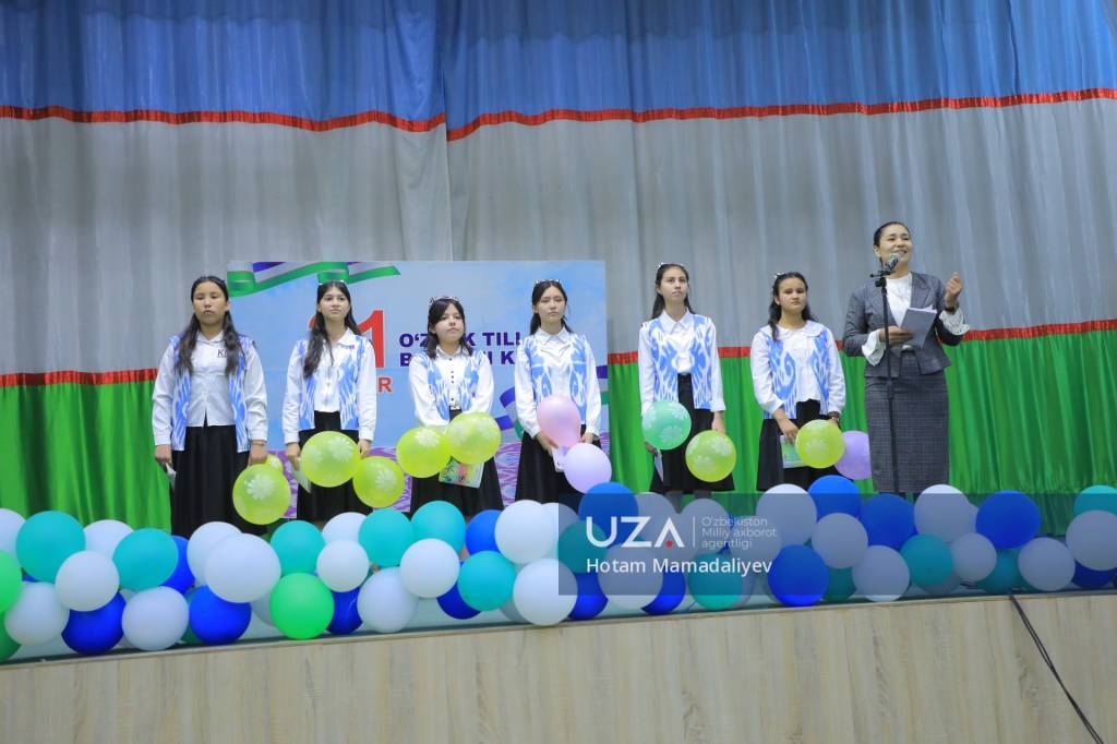 Она тилимизни мадҳ этувчи қўшиқлар, ўқувчилар томонидан тайёрланган саҳна кўринишлари тадбирга кўтаринки руҳ бағишлади.