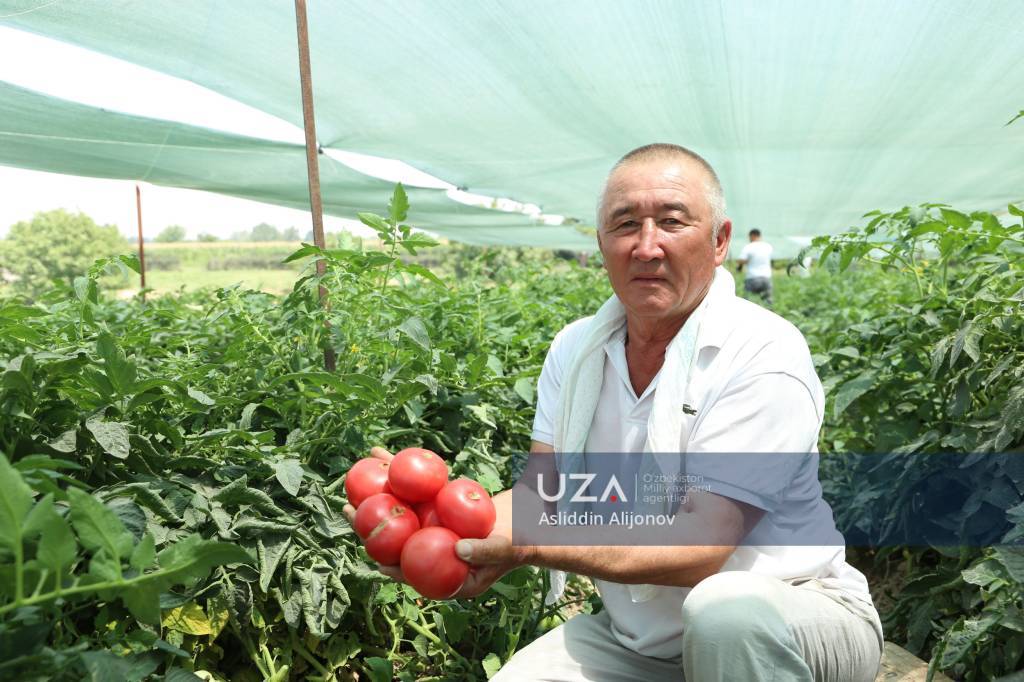 Улардан бири томорқачи деҳқон Муҳиддин Худойбердиев ўзига тегишли 20 сотих ерига эрта баҳорда 8 минг туп пушти помидор кўчатини эккан эди. Охирги 3 ҳафтадан буён ҳар теримда 1-1,5 тонна ҳосил йиғиб, ички ва пойтахт бозорларига улгуржи нархларда топширмоқда.