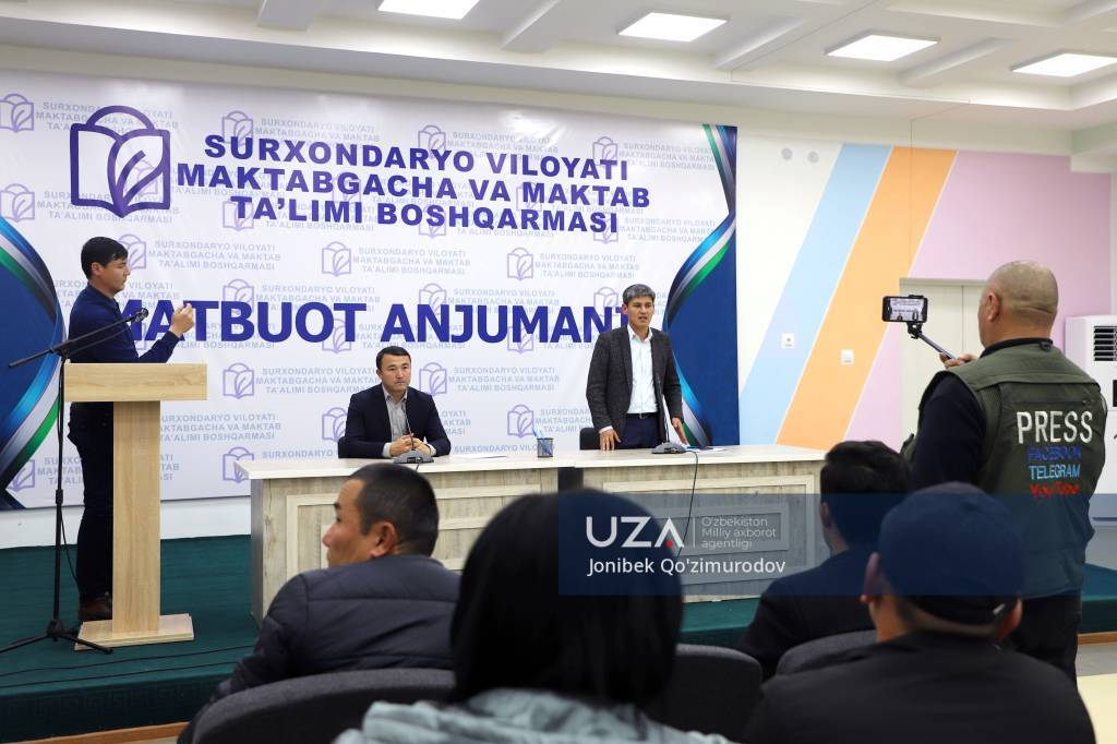 Тадбир доирасида Сурхондарё вилояти Мактабгача ва мактаб таълими бошқармаси бошлиғи Ҳ. Мамадиев иштирокида матбуот анжумани ўтказилди. Унда бошқарма бошлиғи мактабгача ва мактаб таълими тизимида амалга оширилаётган ишлар юзасидан маълумот берди.