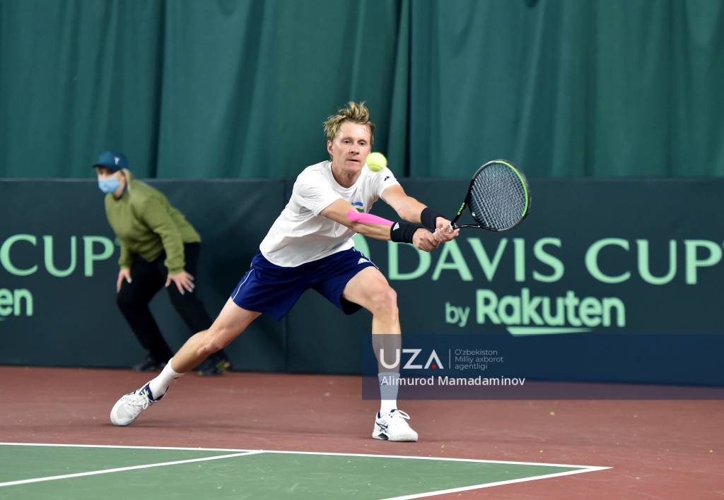 Биринчи бўлиб кортга Санжар Файзиев/ Сергей Фомин ва Альтуг Челикбилек/ Янки Эрел тушди. Учрашувда вакилларимиз 6/2, 6/4 ҳисобида ғалаба қозонди. Ўзбекистон 2:1 ҳисобида олдинга чиқиб олди. Олдинда яна 2 та яккалик ўйини бор.