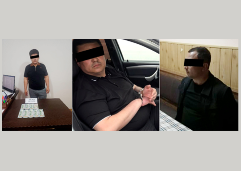 Қашқадарё вилоятида кузатилган ҳолатда эса Яккабоғ туманида яшовчи, 1985 й.т., муқаддам судланган шахс чорвачиликка ихтисослашган фермер хўжалик томонидан сув таъминотига ноқонуний уланиб, фойдаланганлиги ҳолати бўйича аниқланган 99 млн. сўмлик зарарни тегишли ташкилот экспертлари орқали йўқ қилиб бериш эвазига, фермер хўжаликнинг иш бошқарувчисидан 1500 АҚШ доллари олган вақтида ушланди.