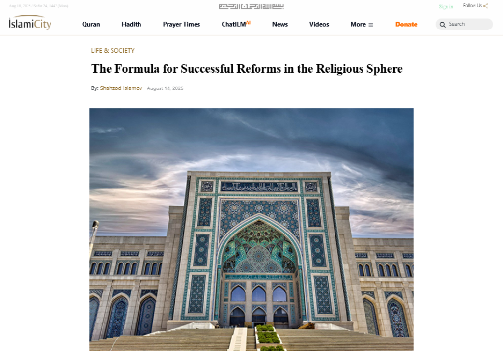 АҚШнинг “IslamiCity” портали ўз саҳифасида Янги Ўзбекистондаги диний соҳа ислоҳотлари ҳақида мақола эълон қилди. Имом Мотуридий халқаро илмий-тадқиқот маркази директори ўринбосари Ш.Исломов билан ҳамкорликда тайёрланган ушбу мақолада сўнгги йилларда дунёнинг етакчи илмий марказлари ва эксперт доиралари эътиборини тортган масала – Ўзбекистондаги диний-маърифий соҳадаги ислоҳотлар, уларнинг муваффақият келтирган омиллари ҳақида сўз боради.