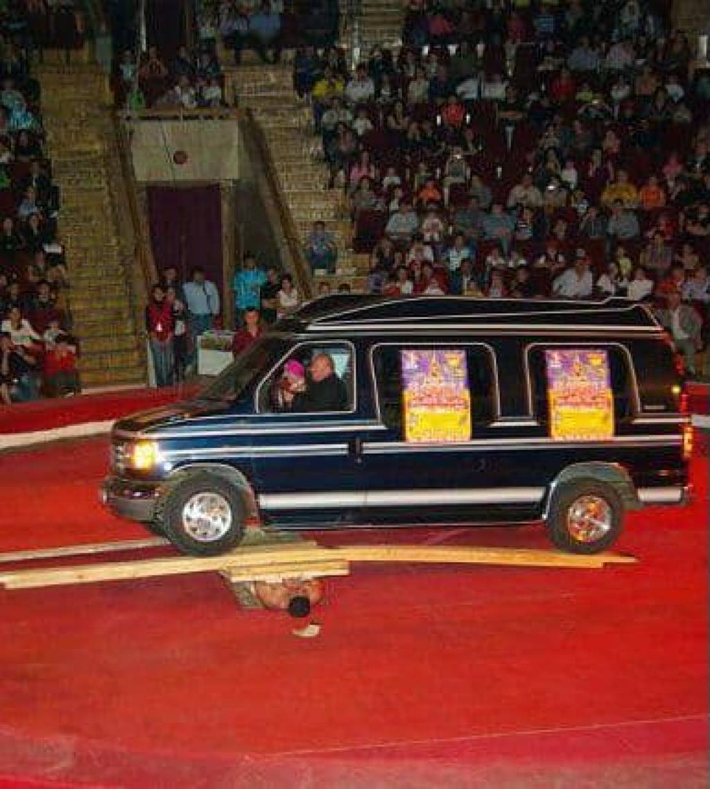 – Бир воқеа бўлганди. Сибирда охирги трюк – устимдан машина ўтиши керак эди. Машина ўтиб, тахталарни олишгандан кейин озгина бош айланиши бўлади. Дарров туриб кетолмайсиз. Бир пас ётиб, кейин турилади. Ўшанда ўрнимдан дарров турмаганимга бир аёл рус тилида: «Эх, вы, за денги такого мужика угробили» деб чинқириб манежга қараб югурганди.