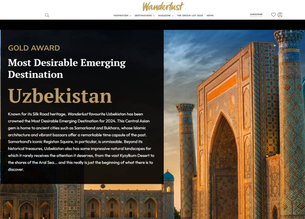 Буюк Британиянинг машҳур “Wanderlust” сайёҳлик журнали "Reader Travel Awards" учун дунёдаги энг севимли манзиллар рейтинги бўйича сўровнома ўтказди.