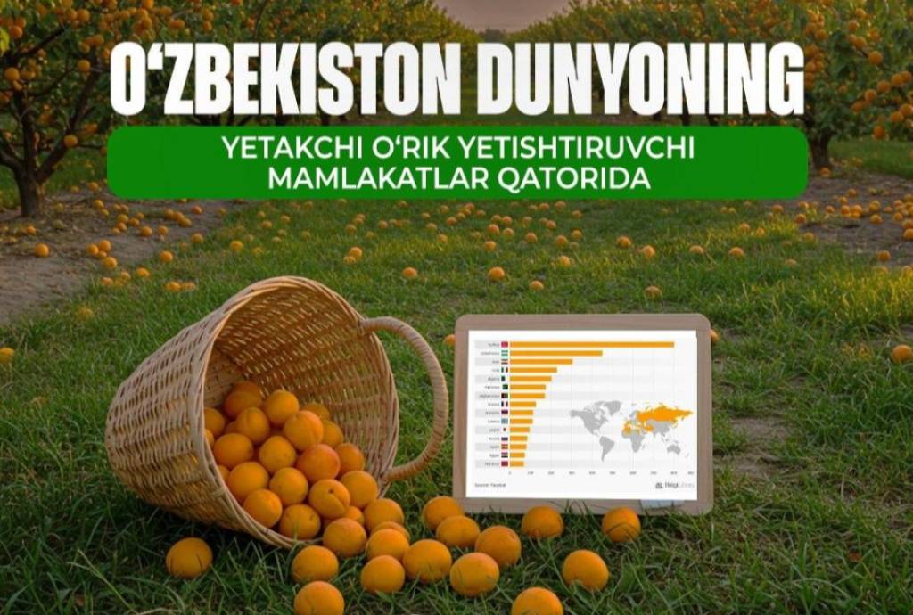 Шунингдек, Италиянинг cherrytimes.it нашри ҳам ўрик етиштирувчи давлатларнинг ТОП 10 талигини эълон қилди ва буларнинг барчасида Ўзбекистонни етакчи давлатлар қаторида кўришимиз мумкин. Ўзбекистонда 2024 йил якунида 527 минг тонна ўрик етиштирилган. Шундай қилиб, юртимиз ҳамон дунёда ўрик етиштириш бўйича иккинч ўринни эгаллаб турибди.
