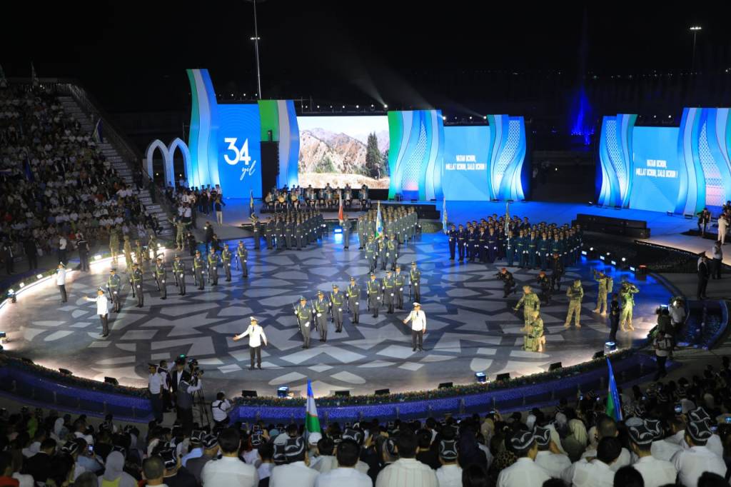 Айнан “Янги Ўзбекистон” массивидаги кўл ва мусиқали фонтан ёнида жойлашган салобатли амфитеатрда мустақилликнинг 34 йиллик байрам тантаналари бўлиб ўтди. Унда вилоятнинг меҳнат фахрийлари, ишлаб чиқариш илғорлари, зиёлилар вакиллари, ёшлар иштирок этдилар.
