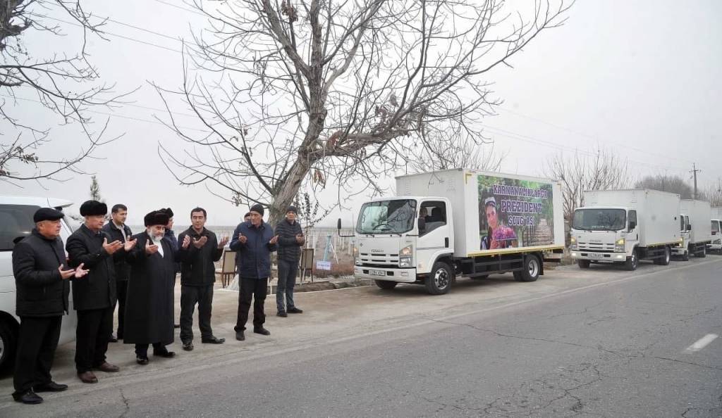 Шу куни кексалар иштирокида дуолар қилиниб, узум кўчатлари ортилган автомашиналар карвони Навоий вилоятига йўл олди.