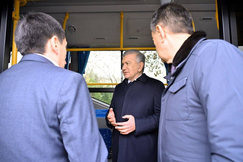 Давлатимиз раҳбари мутасаддиларга юртимиз шаҳарларининг жамоат транспорти паркларини шундай замонавий автобуслар билан тўлдириш ишларини изчил давом эттириш, фуқароларга сифатли хизмат кўрсатиш бўйича кўрсатмалар берди.