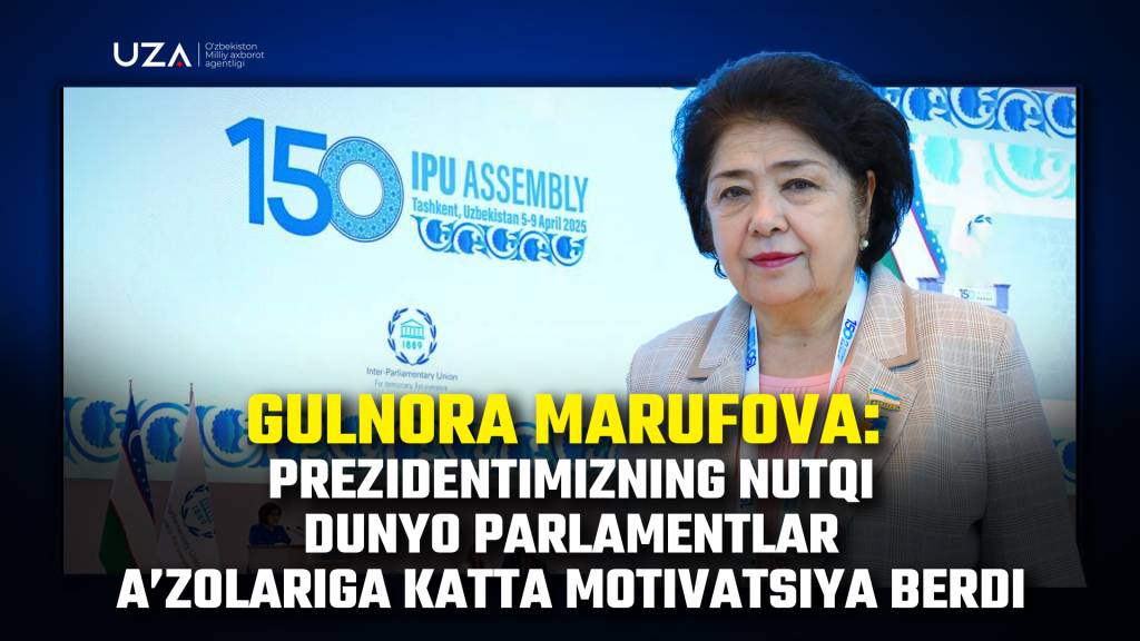 <iframe width="640" height="420" src="https://www.youtube.com/embed/YBMt5QlrR00" title="Gulnora Marufova: Prezidentimizning nutqi dunyo parlamentlar aʼzolariga katta motivatsiya berdi" frameborder="0" allow="accelerometer; autoplay; clipboard-write; encrypted-media; gyroscope; picture-in-picture; web-share" referrerpolicy="strict-origin-when-cross-origin" allowfullscreen></iframe>